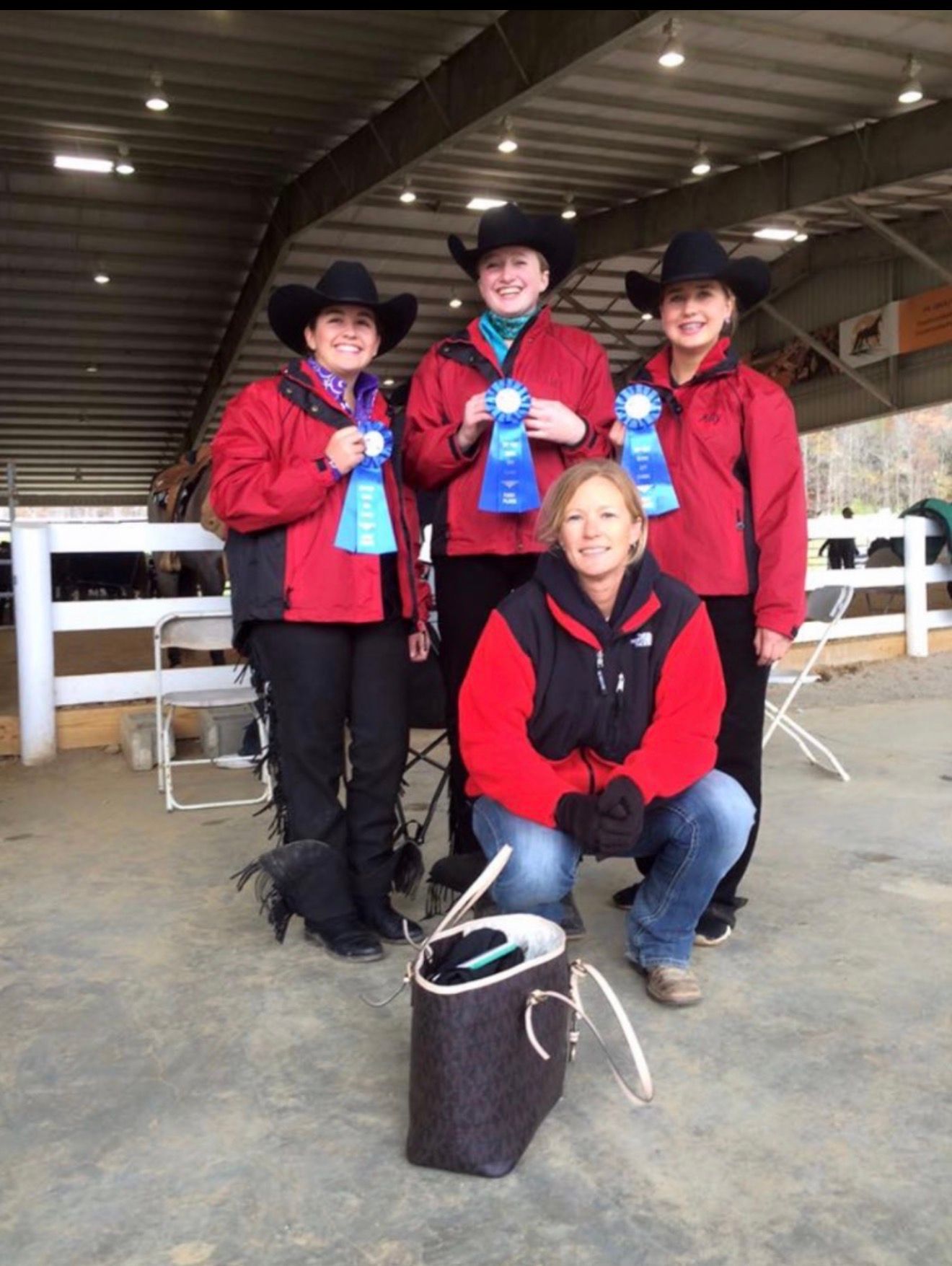 We have two highly trained Western trainers that have taught and competed in all Western events. There are new elements introduced to students as they progress in skill. The Franks family and other elected coaches for the Western Team have many years in competition and training in Reining, Horsemanship, showmanship, horsemanship, in Hand classes (Halter) and the latest is adding Ranch Pleasure, Ranch Riding, and cattle sorting. We insist that all horsemanships practices are taught and that begins with grooming, tacking, riding, then cleaning tack and putting away.